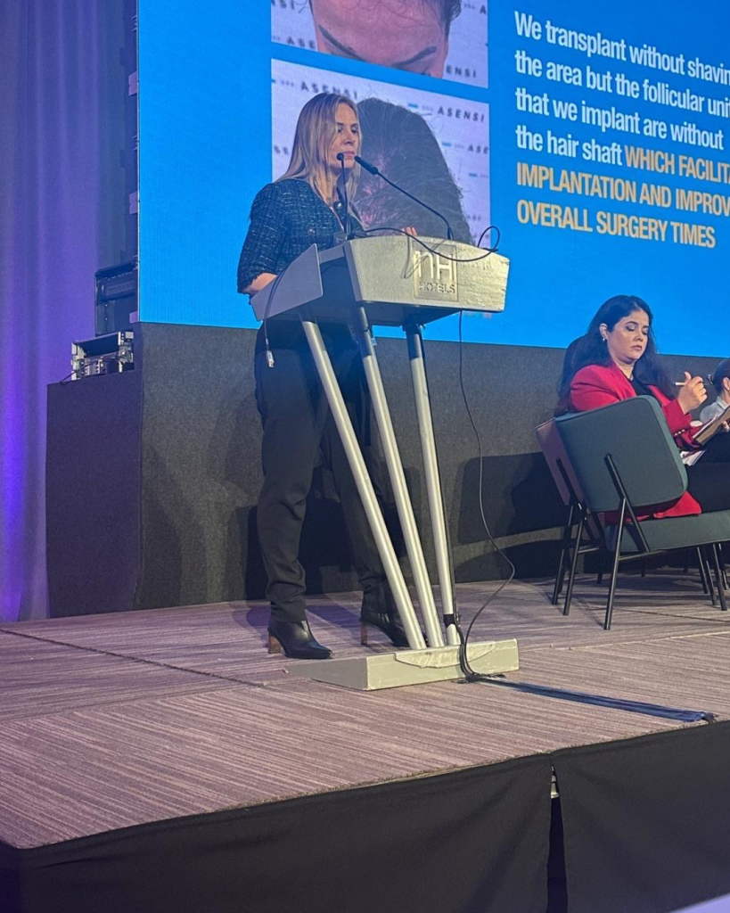 En él, la Dra. Asensi realizó una ponencia como experta en técnica «Long Hair» y «Non Shaven», procedimientos novedosos que se caracterizan por hacer posible un trasplante capilar exitoso sin tener que rapar la zona donante o la zona receptora.