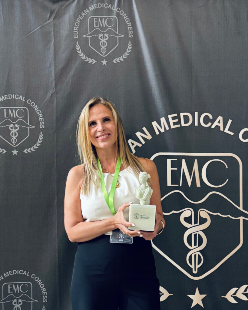 En esta ocasión, tuvo el honor de recibir el Medical Excellence Award en Hair Restoration, reconocimiento por su larga trayectoria y aportación al sector del trasplante capilar en España, tanto a nivel individual como Presidenta de la Sociedad Española de Restauración Capilar.